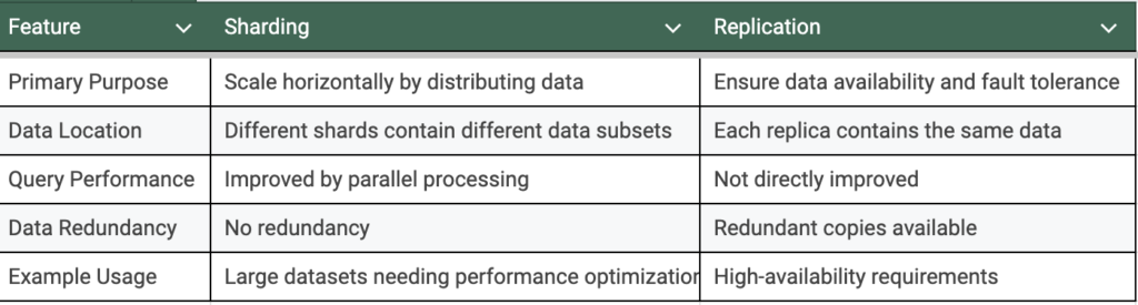 • How it Works: Replication creates copies of the same data across multiple nodes. If one node fails, another node with the replicated data can serve queries, ensuring data availability and reducing downtime.